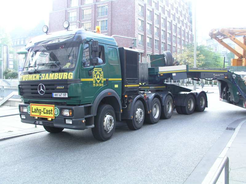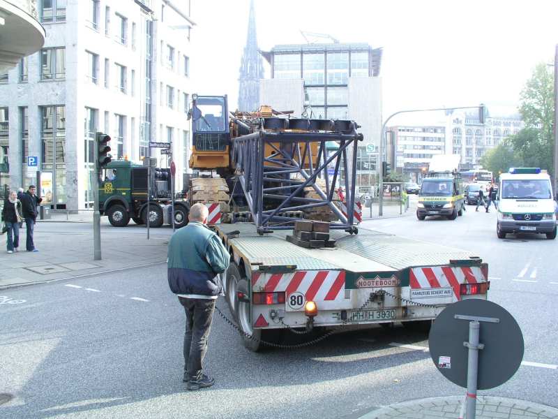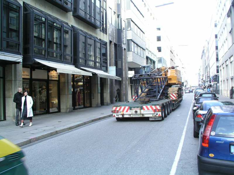 Der Tieflader im Neuen Wall, in richtiger Richtung.