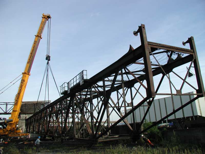 Schmidbauer KG hebt 160 t schwere Kranbahn im Baseler Rheinhafen