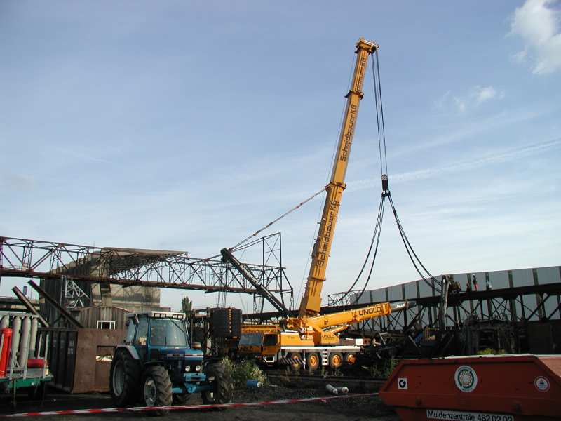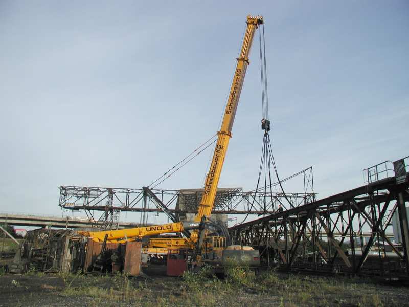 Danach hatte der 800 Tonner noch die Aufgabe das Oberteil des defekten 80 t Auslegers und die Stütze