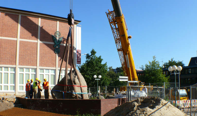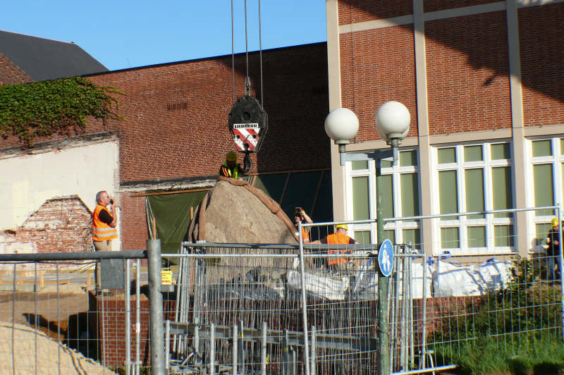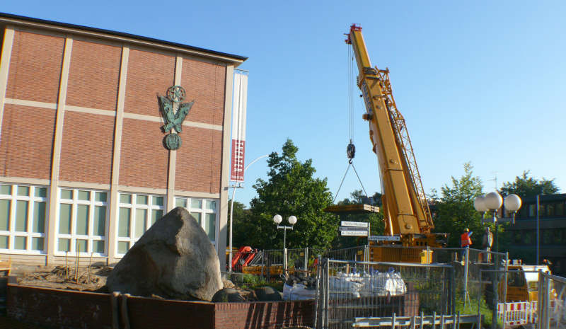 Im Jahre 2008 sollte das Helms Museum erweitert werden und für den Findling mußte ein neuerPlatz gefunden werden.