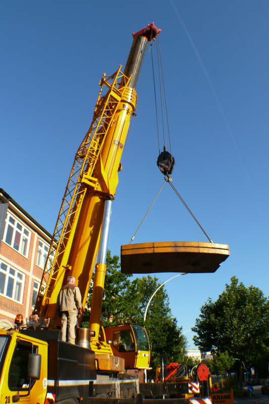 Für das ausheben und die Verladung kam der LTM 1220-5.1 zum Einsatz, den (kurzen) Transport übernahm ein