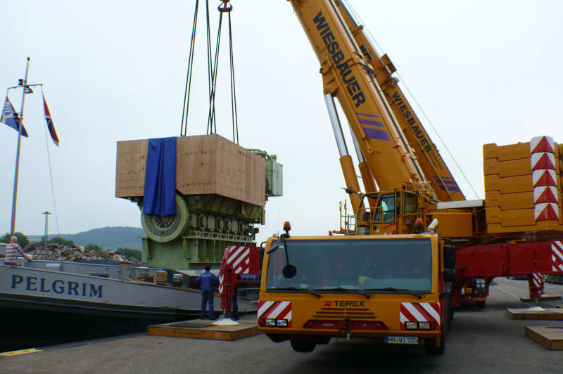 Motorenumschlag im Heilbronner Hafen durch Wiesbauer und Voss