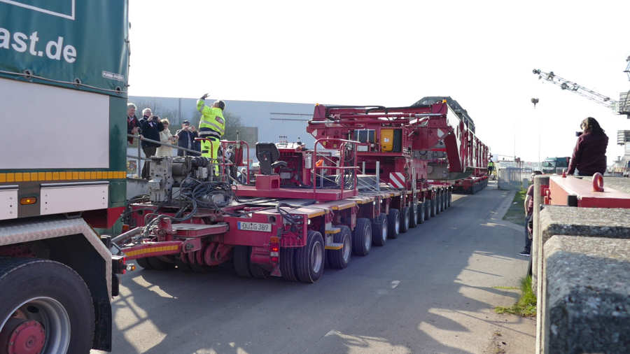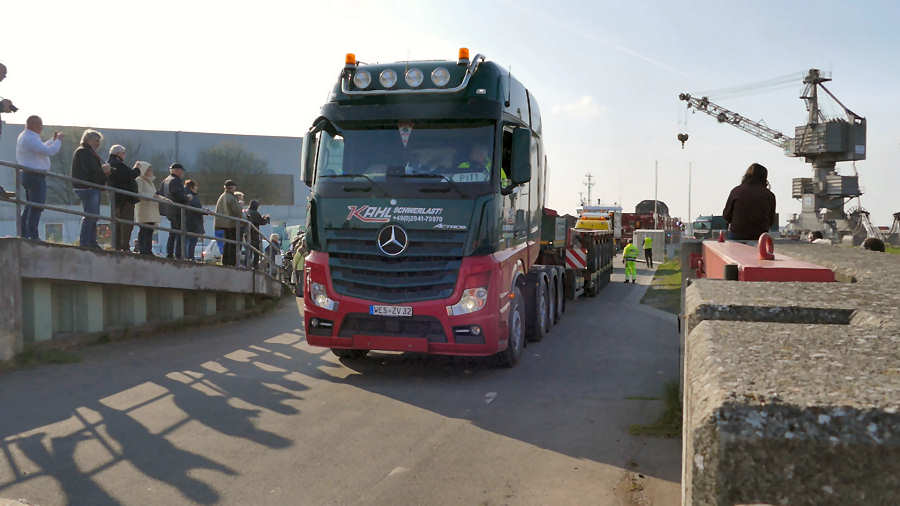 Direkt danach startete der Trafotransport unter Beobachtung zahlreicher Schwerlastfans und sonstiger Zuschauer.