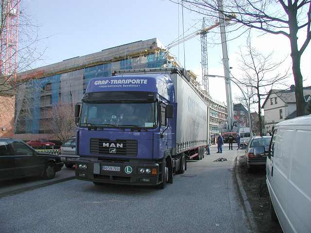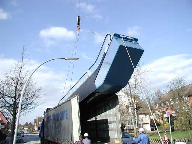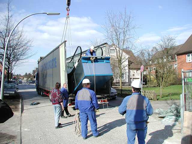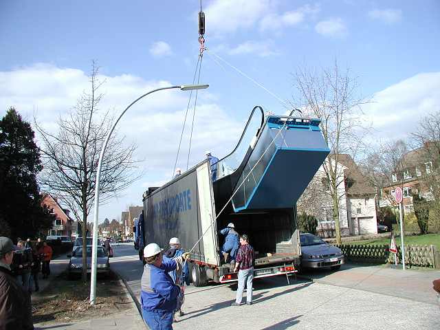 die Last wurd zunächst ,vorsichtig aus dem Auflieger gezogen