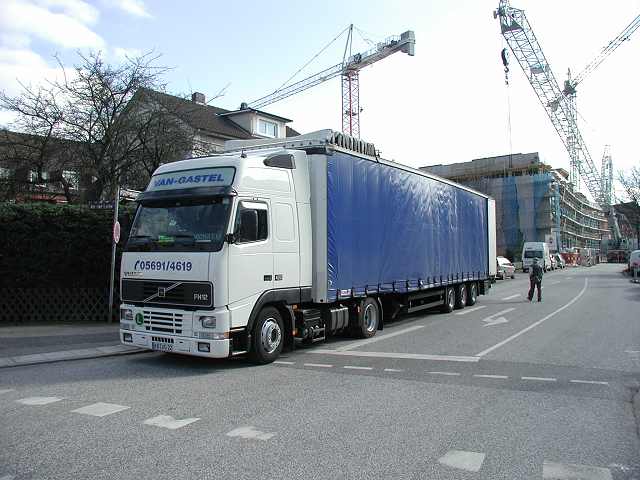 Überall in den Seitenstrassen standen Lastzüge ,denn es wurden auch gleich die Treppen