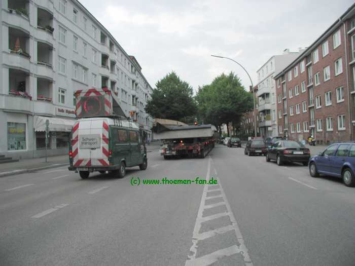 Hier verschwindet der zweite Transport in der engen Hellbrookstraße