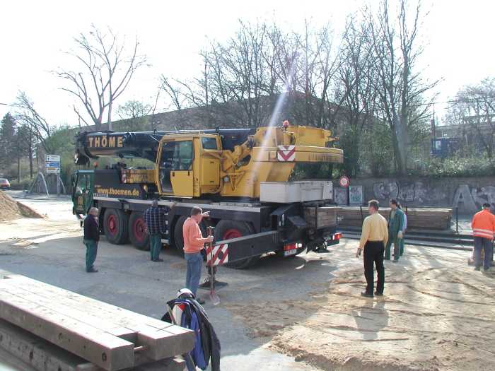 Kraneinsatz an der Landwehr 2004 - Einhub der letzten Brücken