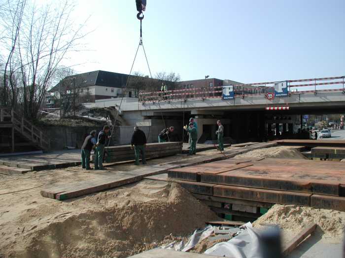 Kraneinsatz an der Landwehr 2004 - Einhub der letzten Brücken
