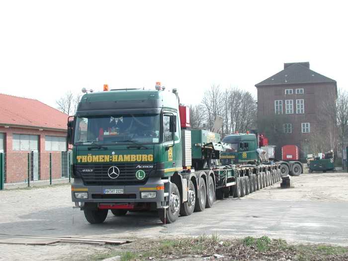 Ein Tag vor dem Transport stellte Thömen seine Achslinien zu einem 15 achsigen Sattelroller zusammen
