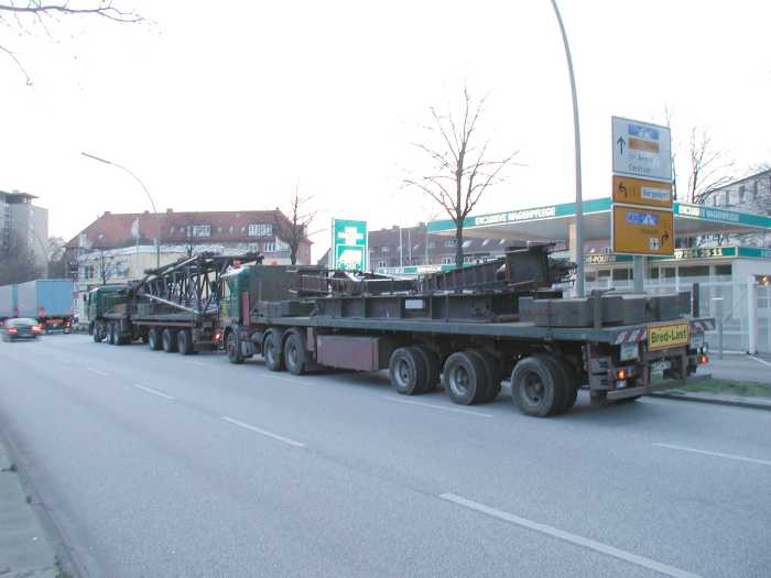 Vorne Derrickkopfstück und Ballast, hinten Schwebeballastbühne und Ballast.