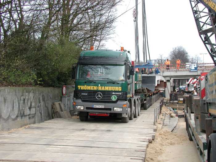 Kraneinsatz an der Landwehr 2004 - Einhub der letzten Brücken