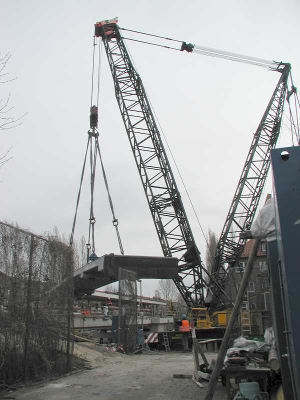 Kraneinsatz an der Landwehr 2004 - Einhub der letzten Brücken