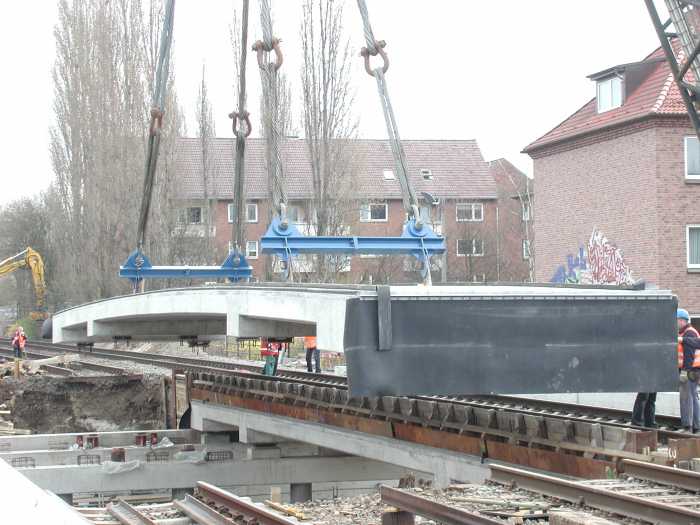 Kraneinsatz an der Landwehr 2004 - Einhub der letzten Brücken