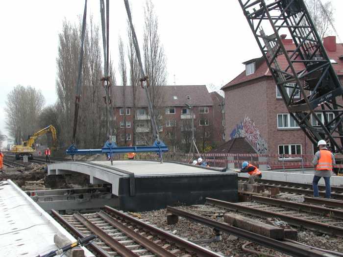 Kraneinsatz an der Landwehr 2004 - Einhub der letzten Brücken