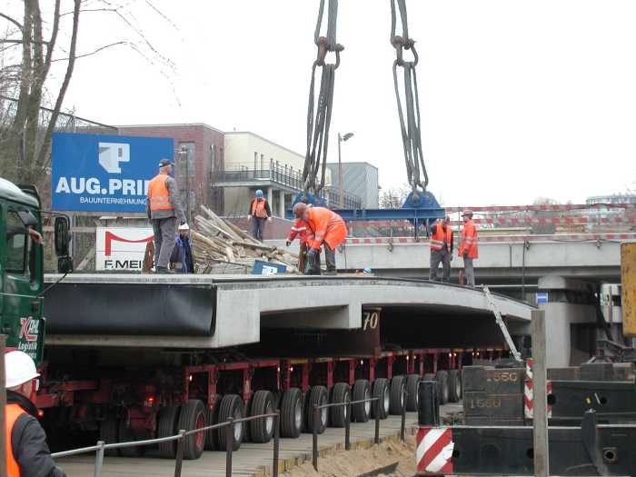 Kraneinsatz an der Landwehr 2004 - Einhub der letzten Brücken