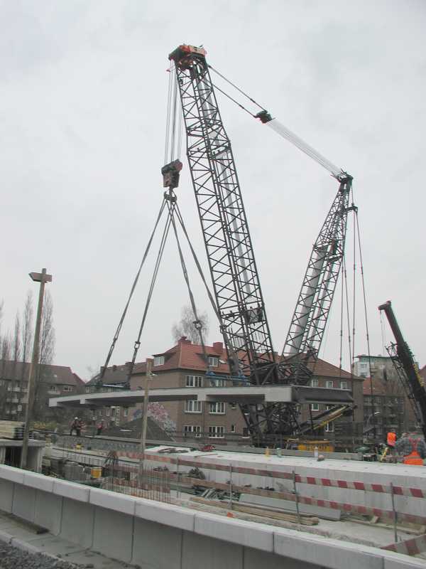 Kraneinsatz an der Landwehr 2004 - Einhub der letzten Brücken