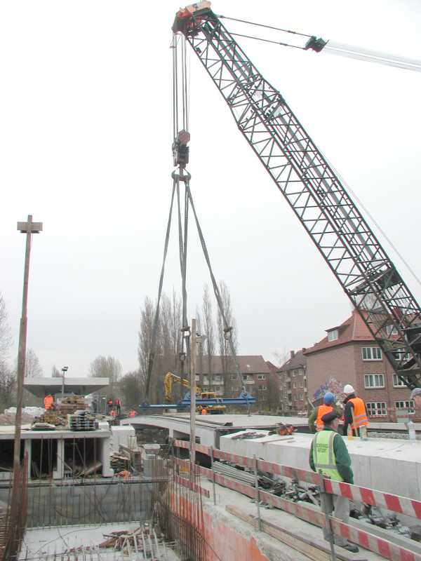 Kraneinsatz an der Landwehr 2004 - Einhub der letzten Brücken