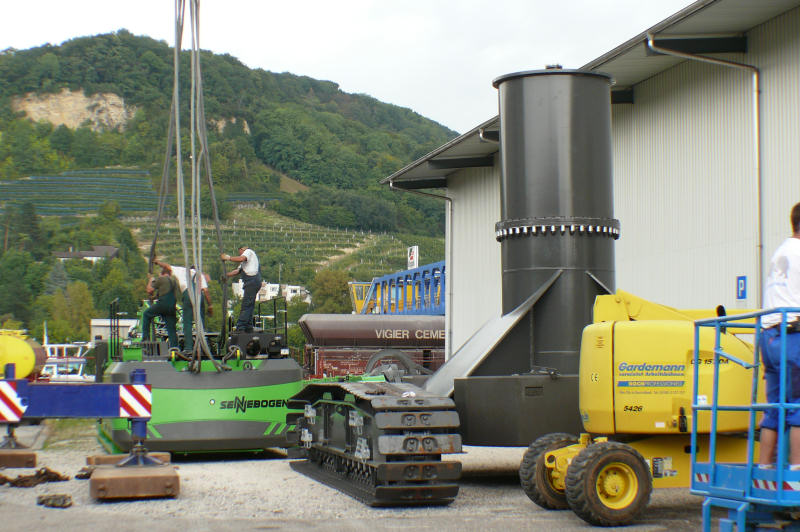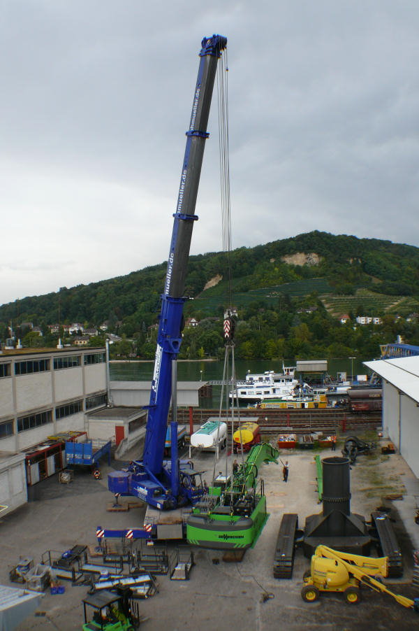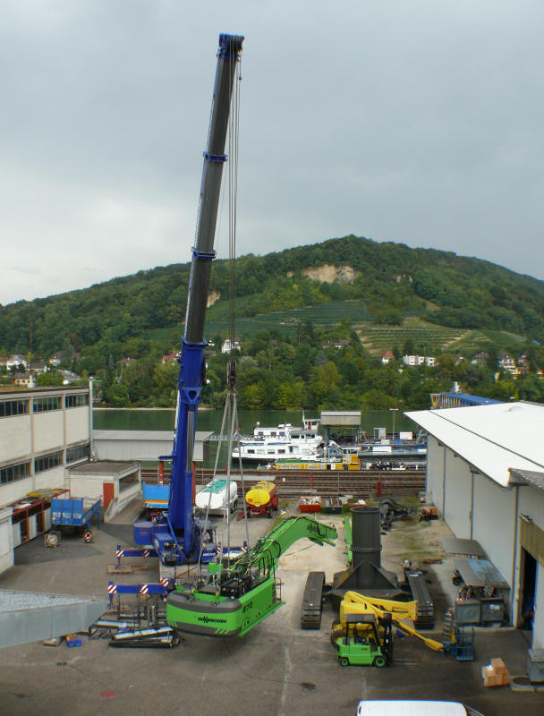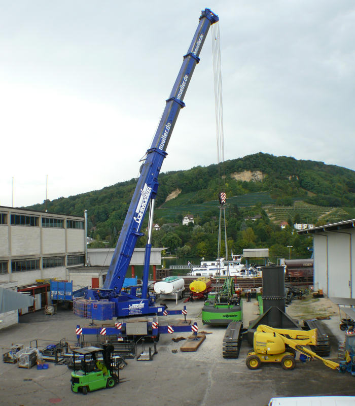 Umschlag Gerät durch den GMK 5180 der Firma Lohmüller aus Lörrach montiert.
