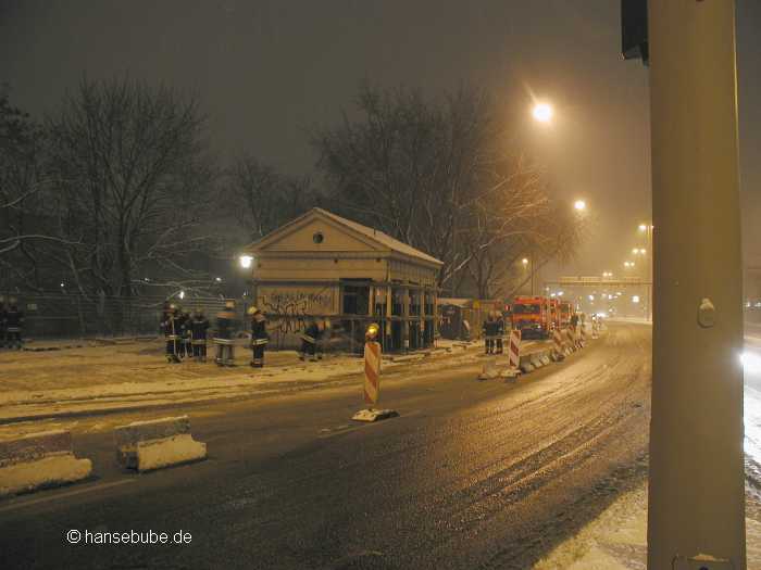 Morgens um 03.30 am Millerntordamm in HH St Pauli, Kräfte der FF Altona und Ottensen bereiten