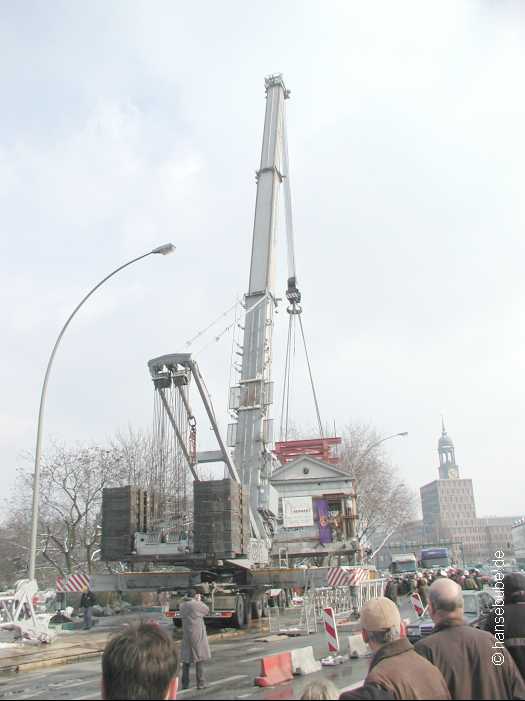 Das Wachhäuschen schwebt bereits in der Luft, die Statiker haben gut gearbeitet,