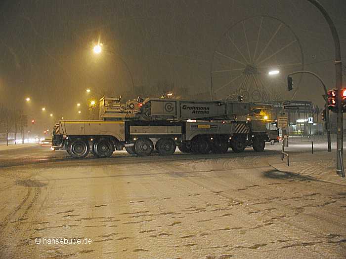 Um die korrekte Richtung auf der Standfläche zu bekommen, muß der Kran auf der Kreuzung