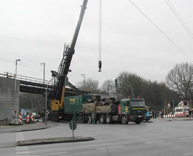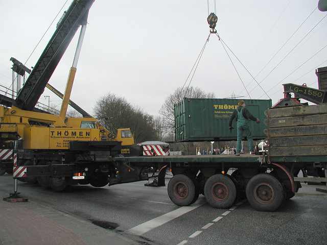 fesgelegt wurde und das Grundgerät in Position gebracht wurde ,rollen die Tieflader an...