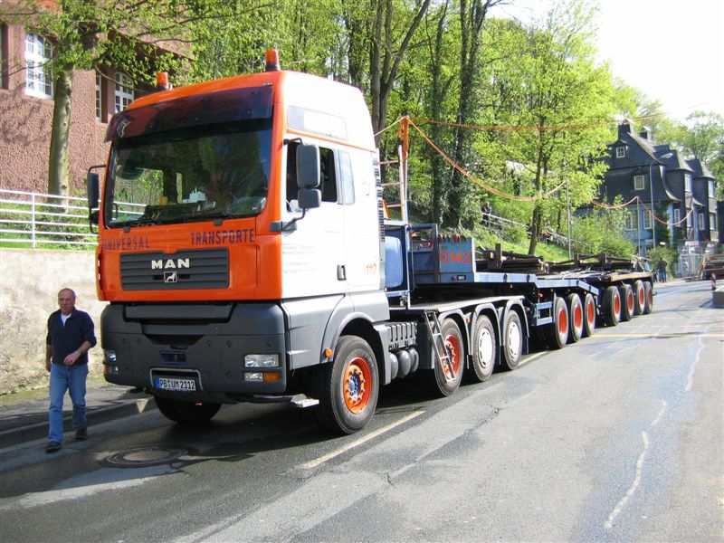 Ein entladener Universal Transport kurz vor der Abfahrt