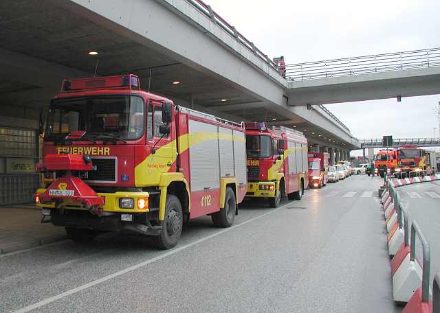 der Feuer- und Rettungswache Alsterdorf der BF Hamburg mit vier Fahrzeugen an.