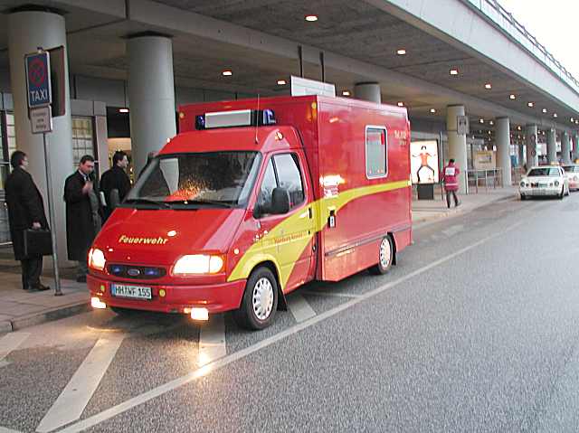 KTW der Flughafenfeuerwehr , das Fahrzeug ist wie ein Rettungswagen ausgerüstet ,