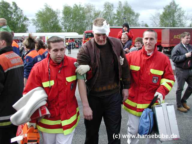 Ein "Geretteter" wird zum Rettungswagen geführt