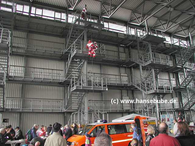 und nutzte die vorhandenen Übungstreppen für Abseilvorführungen