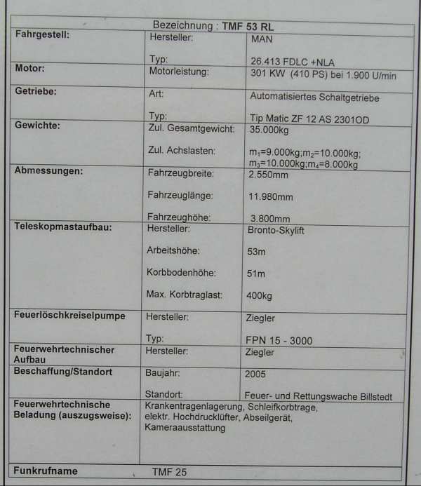 Im Mai 2005 wurde bei der Feuerwehr Hamburg ein Teleskopmastfahrzeug vom Typ Bronto