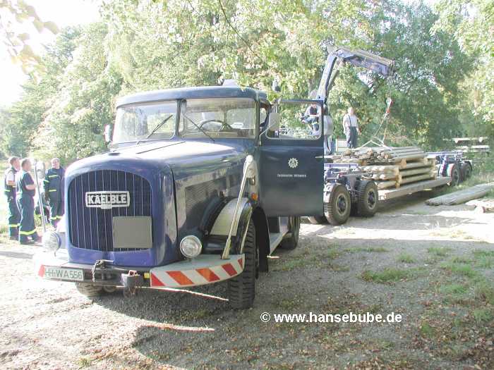 Die Kaelble und einige andere Fahrzeuge waren bei einer Brückenbauübung im Oktober zu finden