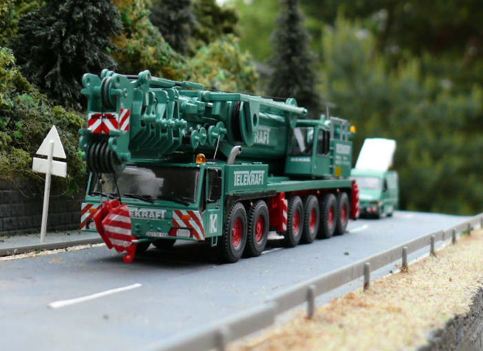 Der Begleittieflader mit dem Grundballast entstand aus Kibri Teilen.