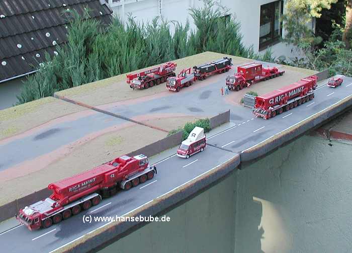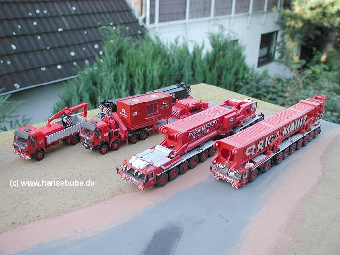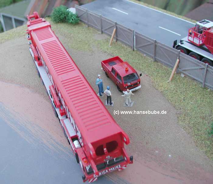 Kran und einige Begleitfahrzeuge .