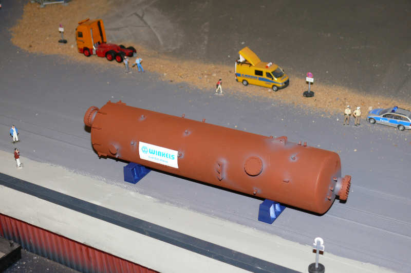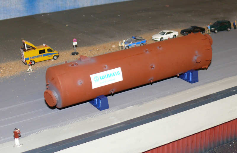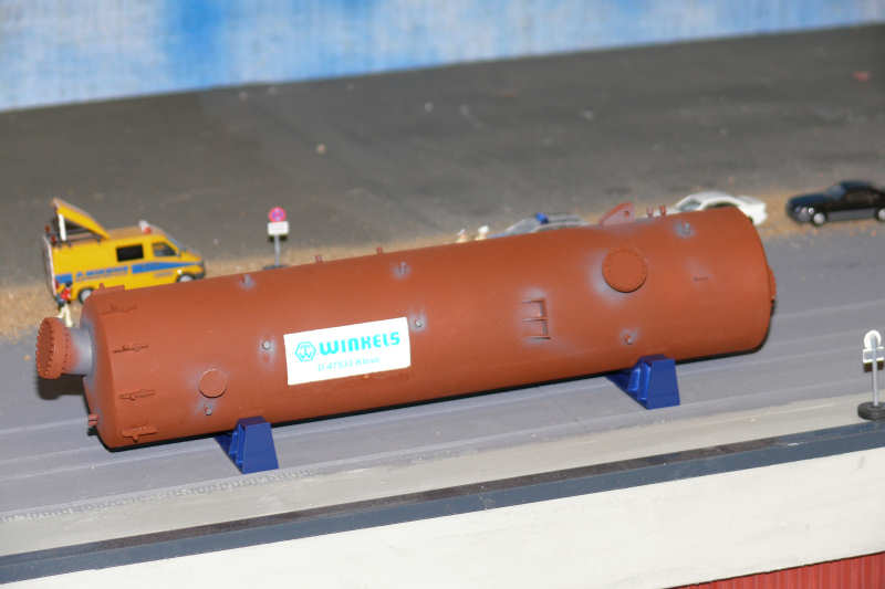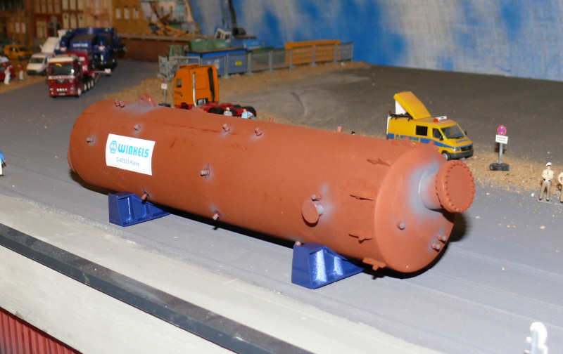 Hier steht der Druckbehälter auf Kessellagerungen von Bastian Modellbau.