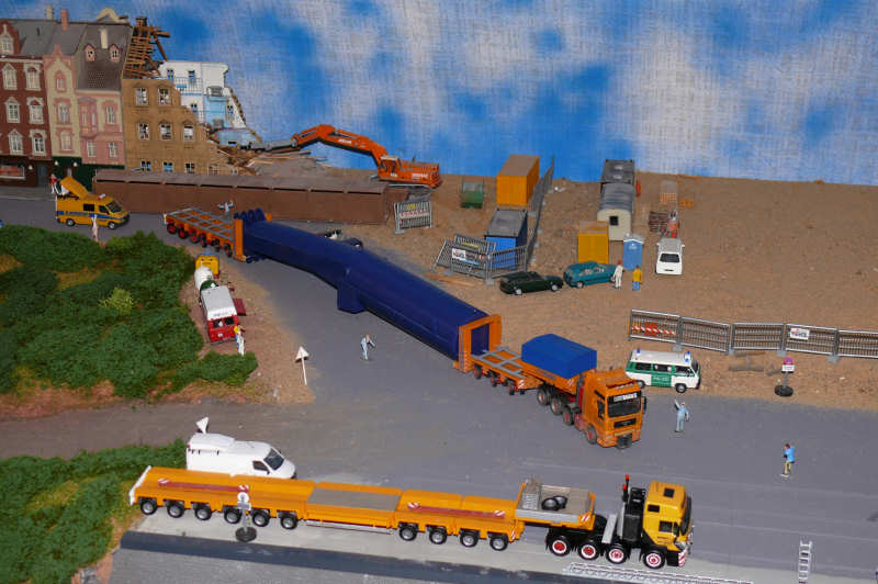 Transportiert werden Kran und Modell auf Fahrzeugen die ebenfalls von Burkhard stammen.