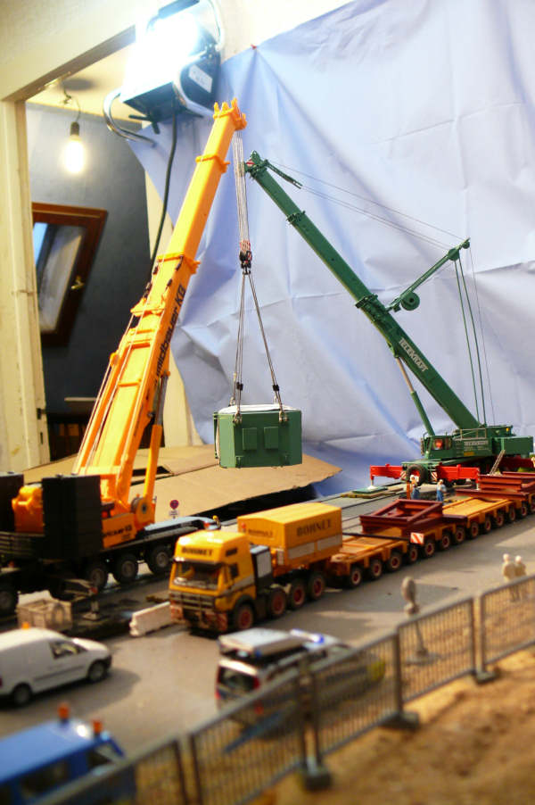 Langsam wird der Pressenständer über den Leichter geschwenkt