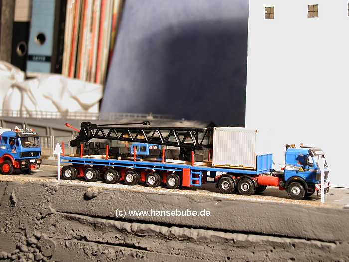MB SK mit Ballasttrailer beladen mit Werkzeugcontainer 1x 10 t Ballastplatte,6 x 7,5 t Zusatzballast und