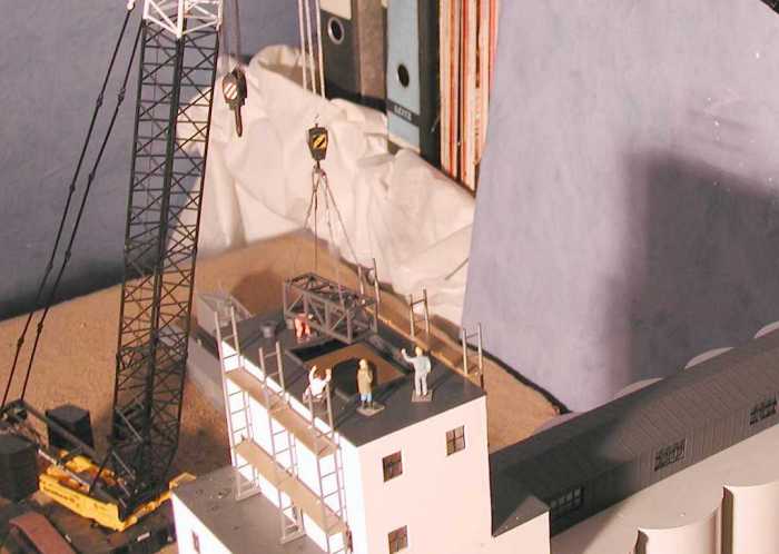Es werden Bauteile für eine neue Förderanlage eingehoben