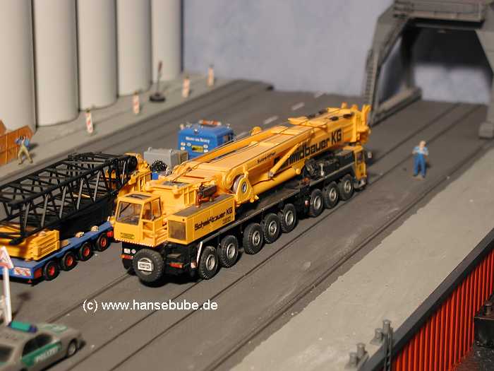 Hier ist der Kran für Arbeiten an einer Siloanlage im Hafengebiet angefordert worden,
