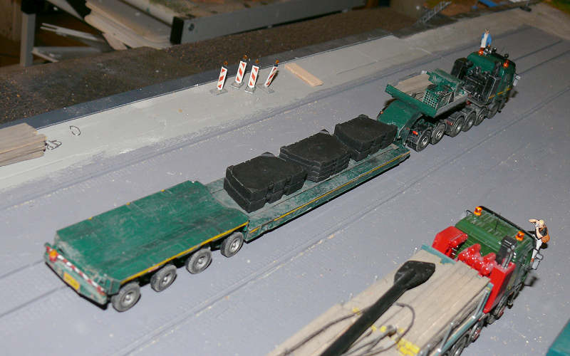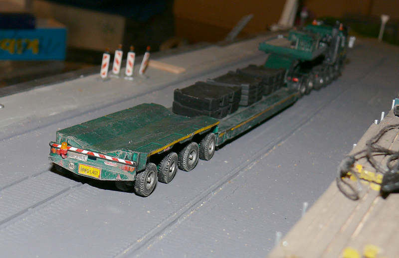 Nochmal ein Blick auf den Schwanenhals, die grüne Kiste entstand aus Kunststoffresten, die Holzbohlen aus Balsaholz.