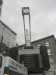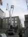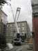 entkerntes Gebäudes die Teile des Turmkranes einheben. Dazu war der