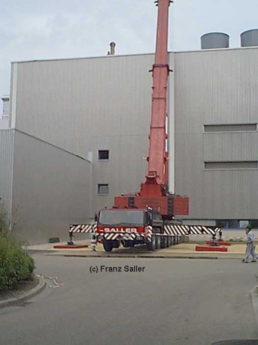 Liebherr LTM 1300 mit HAV 12 m bei einem Einsatz in Dingolfing/Ndb. in teilballastiertem Zustand( 5 x 13 t)