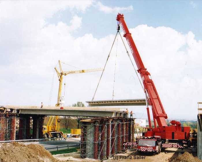 musste bei 18 m Ausladung 56 t schwere Betonträger heben.