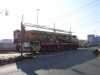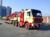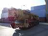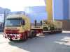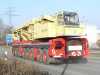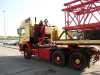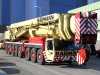 Die Bilder zeigen den Kran und die Begleitfahrzeuge.