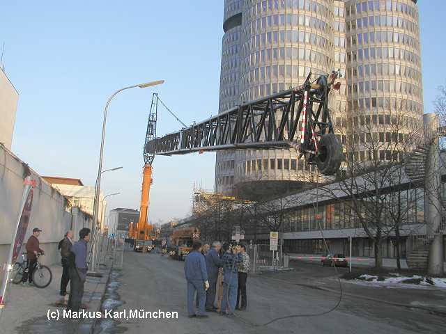 wahren mußte der Kran mit 84 m Wippspitze aufgerüstet werden.