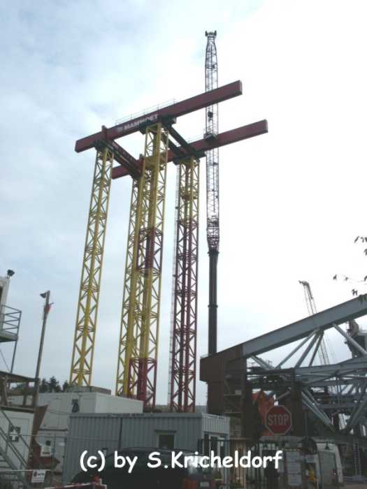 Der fertiggestellte erste Turm des Mammoet Hugerüstes