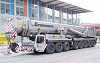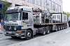 die das leichte Gefälle der Strasse ausglich. Der Kran musste also zwischendurch abgerüstet werden,