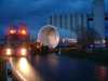Die Bilder zeigen die Verladung des kleineren Kessels auf ein Kesselbett, sowie die Transporter
